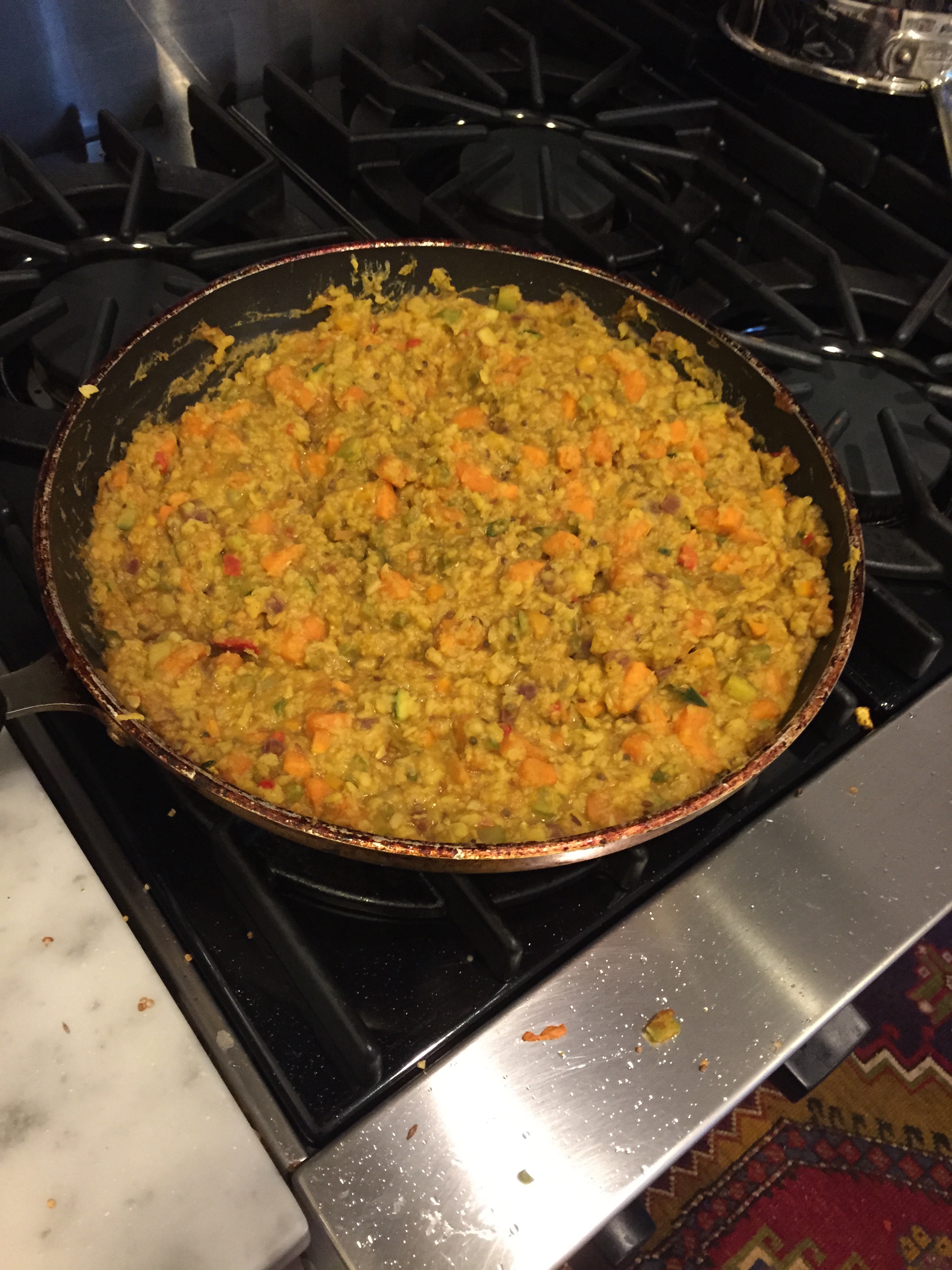- Absolutes are no dairy, no eggs, no caffeine, no sugar, no meat, no onions or garlic, no nightshades (potatoes, tomatoes, peppers, eggplant, tomatillos, Goji berries and other berries – consult Google-ji for others). Coconut oil or ghee can be used, but no other oils. Often kitchari is a one-pot dish, but I like to make the rice separately, partly for snacks and partly because I make delicious rice. 🙂